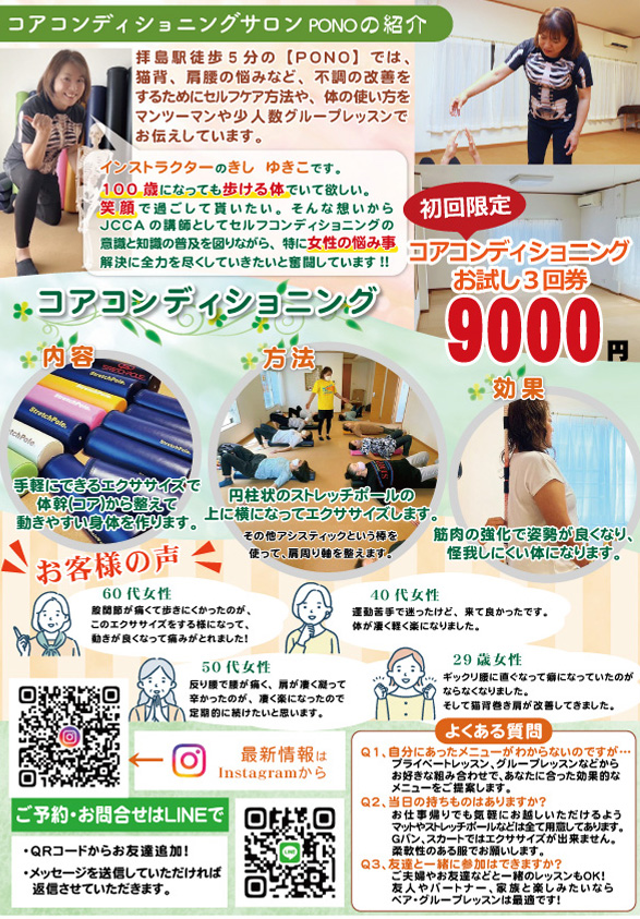 福生市 コアコンディショニングサロン PONO 様 チラシ作成しました。